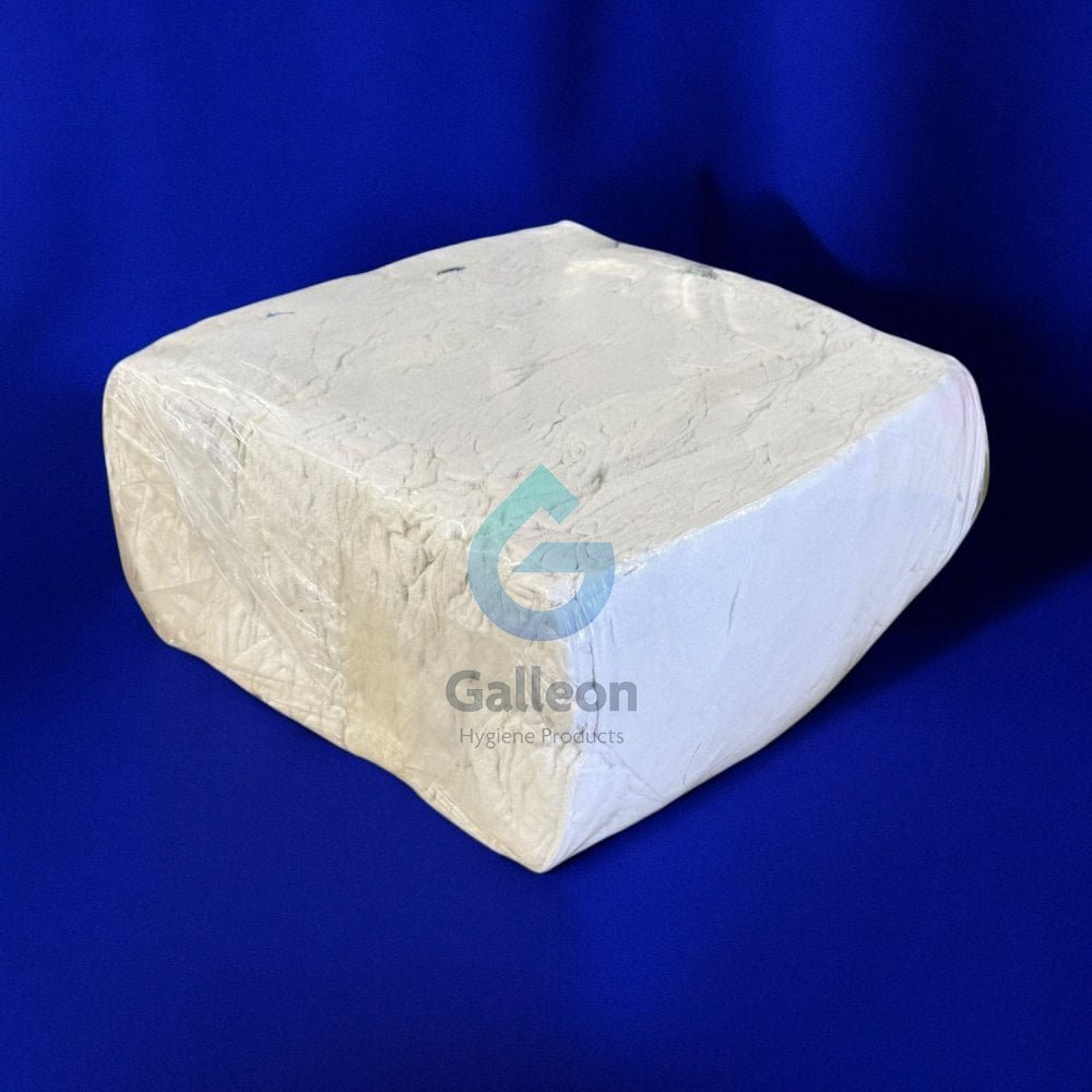 8kg bale of white rags, produced from recycled bathrobes and towel sheets.